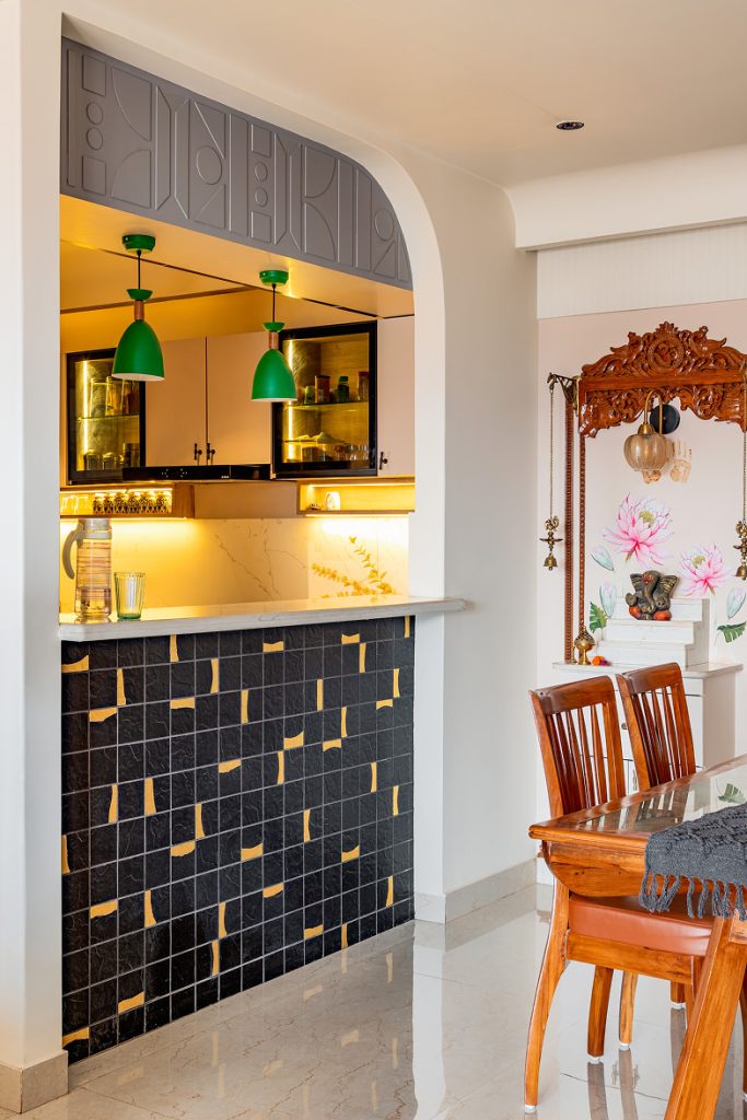 Located in Baner, Pune in an up-and-coming neighborhood is the 3-bedroom residence housing the Kulkarni family. The home is an intimate space and has been designed as such with sparse furnishing and bright, lively touches. While the living and dining areas are light filled, featuring a stunning breakfast bar – perfect for hosting; the heart of the house is a little girl’s bedroom. A tiny space with a pull-out bed pushed against the wall and a strategically planned corner study leaves the space in front completely open for the child.