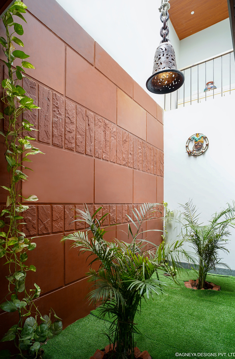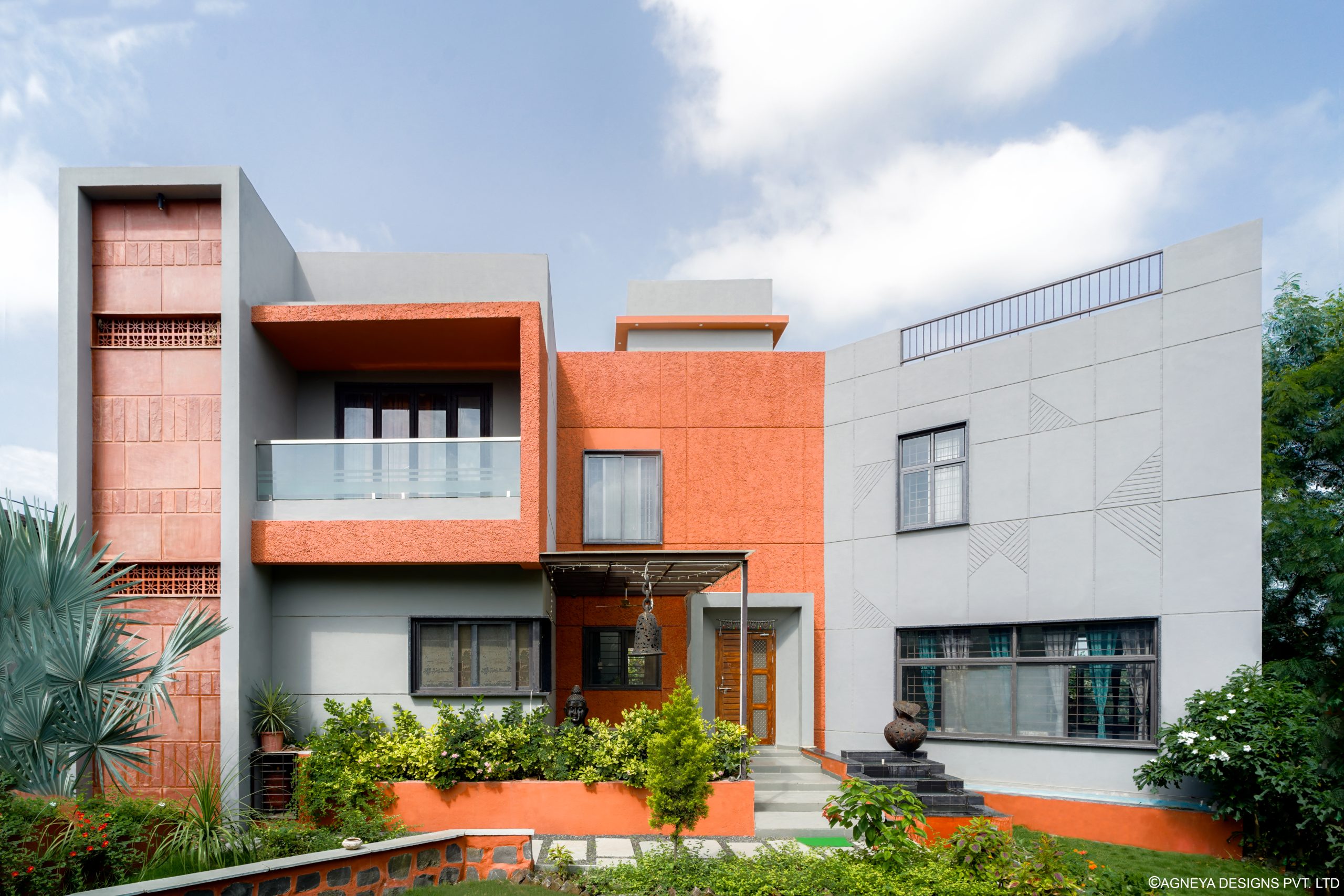 The motifs engraved in the wall add to the unique identity of the house.